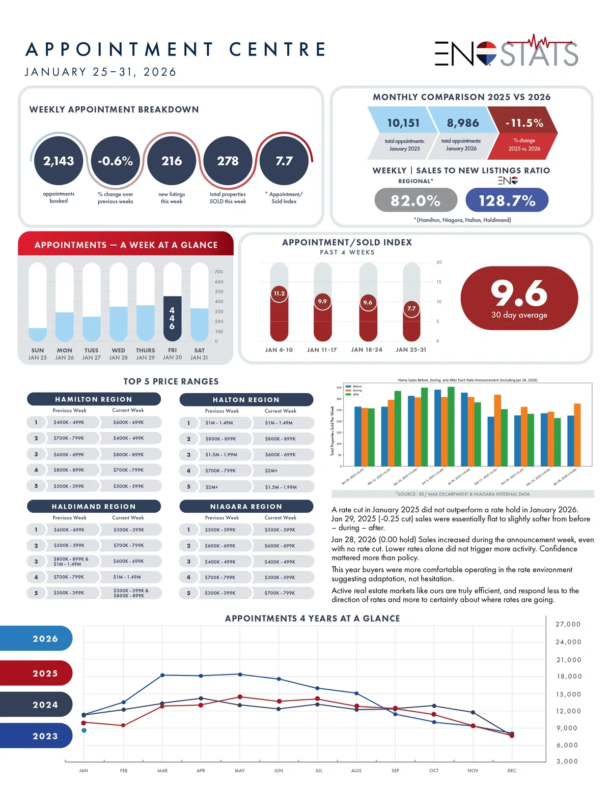 Jan 28, 2026 (0.00 hold) Sales increased during the announcement week, even with no rate cut. Lower rates alone did not trigger more activity. Confidence mattered more than policy. This year buyers were more comfortable operating in the rate environment suggesting adaptation, not hesitation.