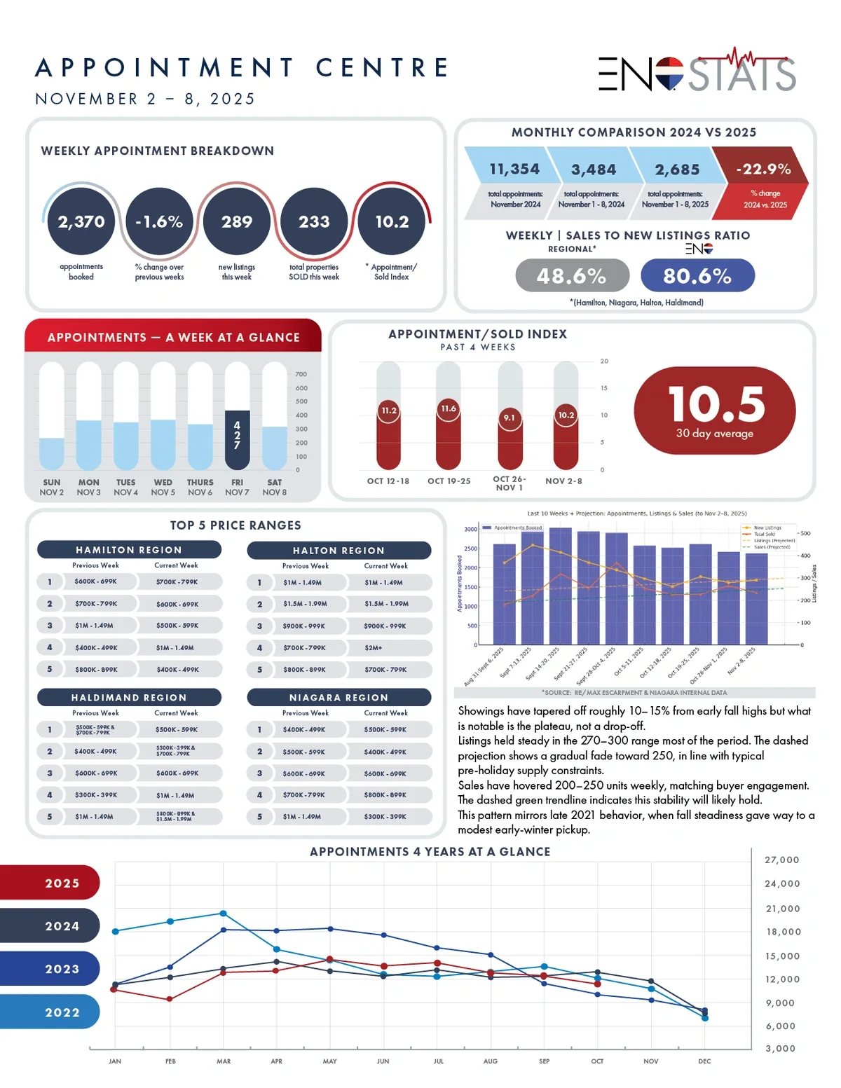 Showings have tapered off roughly 10–15% from early fall highs but what is notable is the plateau, not a drop-off.