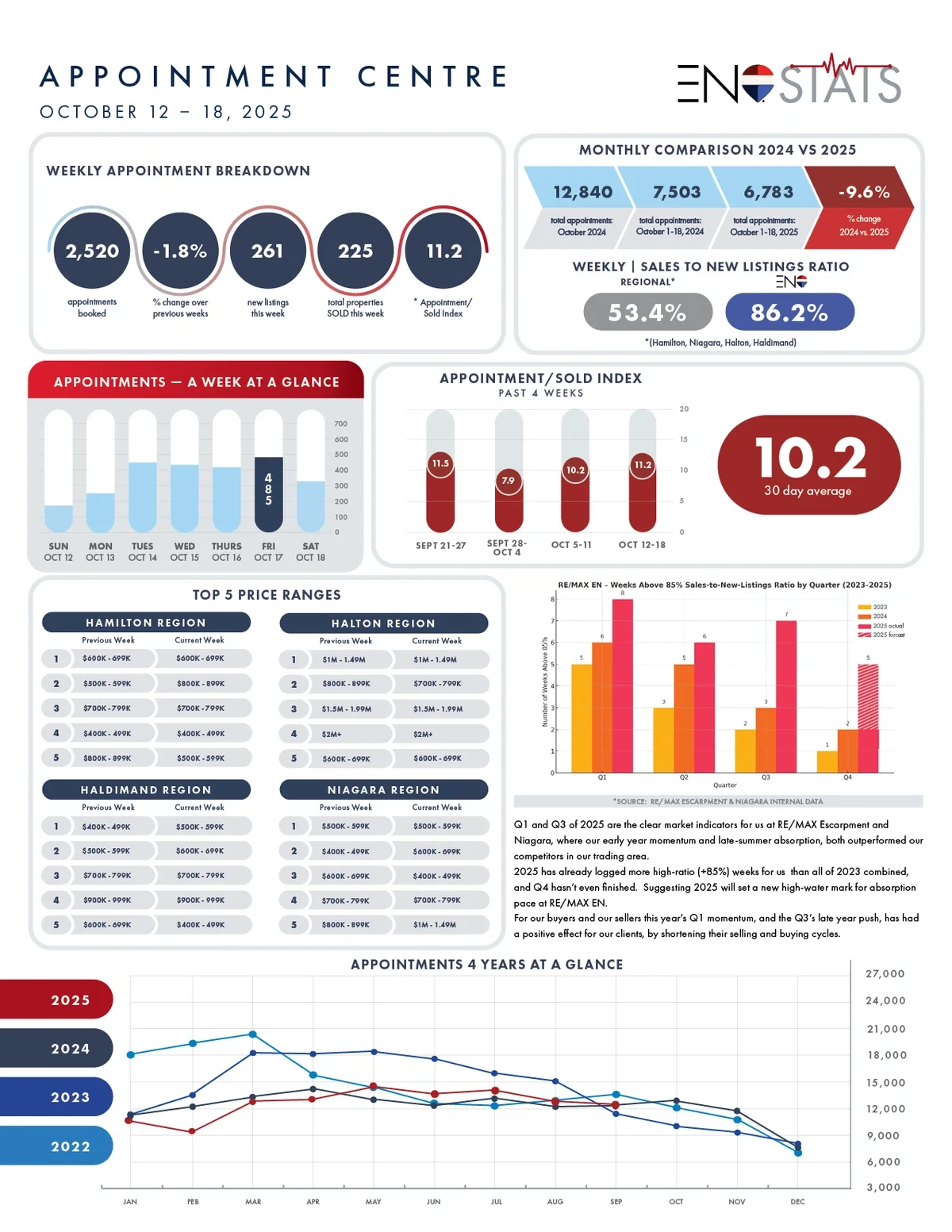 Q1 and Q3 of 2025 are the clear market indicators for us at RE/MAX Escarpment and Niagara, where our early year momentum and late-summer absorption, both outperformed our competitors in our trading area.